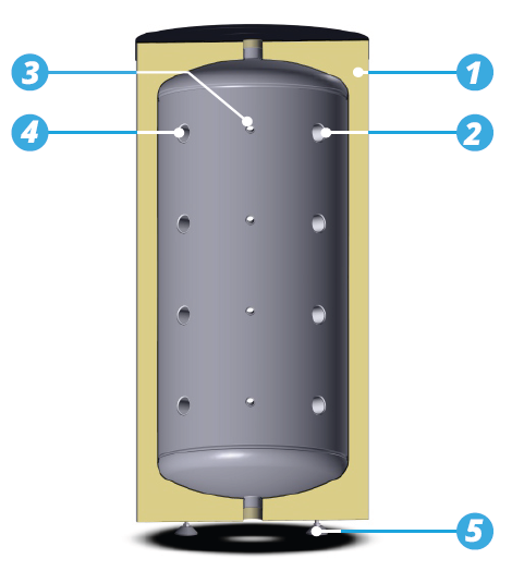 Tepelná izolace v nádržích je vrstva trvalé polyuretanové tvrdé pěny bez CFC a vyměnitelná PVC fólie.